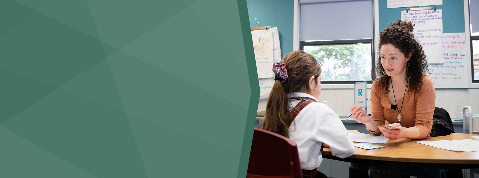 St Patrick's Catholic Primary Parramatta student seated with dedicated teacher